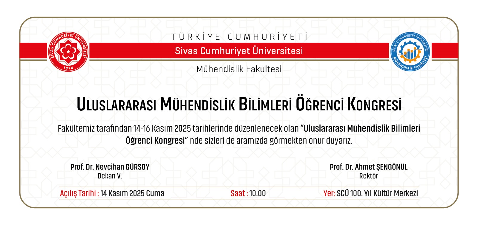 ULUSLARARASI MÜHENDİSLİK BİLİMLERİ ÖĞRENCİ KONGRESİ (14-16 Kasım)
