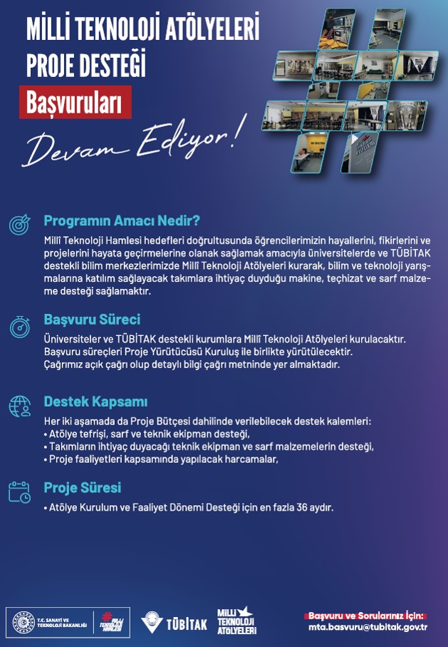 Milli Teknoloji Atölyeleri Proje Desteği Başvuruları
