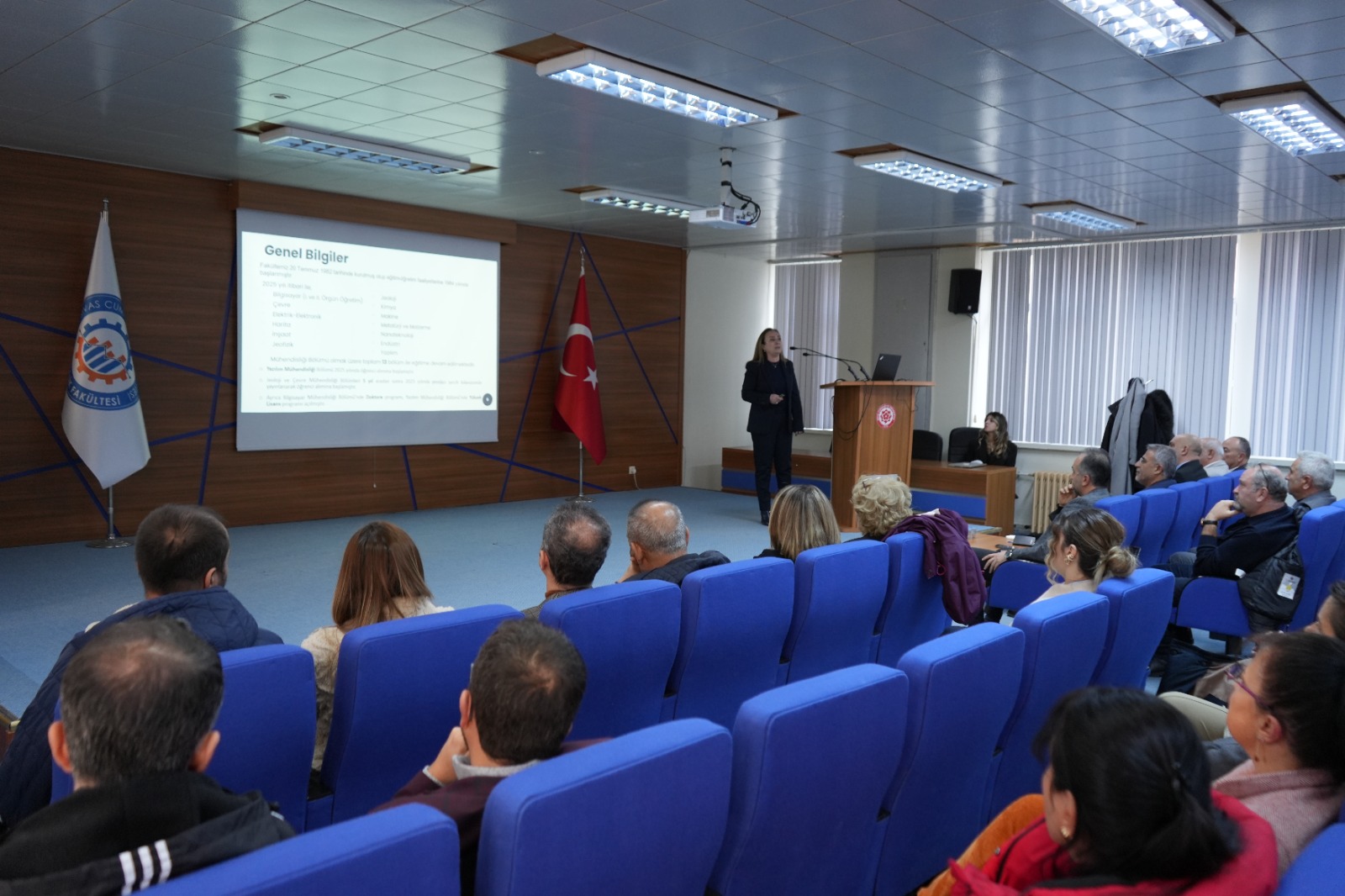 Toplantı, Mühendislik Fakültesi Dekanı Prof. Dr. Nevcihan Gürsoy’un fakülte bünyesinde yürütülen çalışmalar, devam eden projeler, eğitim-öğretim faaliyetleri ve gelecek döneme ilişkin hedefleri içeren kapsamlı sunumuyla başladı. Prof. Dr. Gürsoy, fakültenin gelişimine katkı sağlayan tüm akademik personele teşekkür ederek yeni dönemin verimli ve yenilikçi çalışmalarla geçmesini temenni etti.