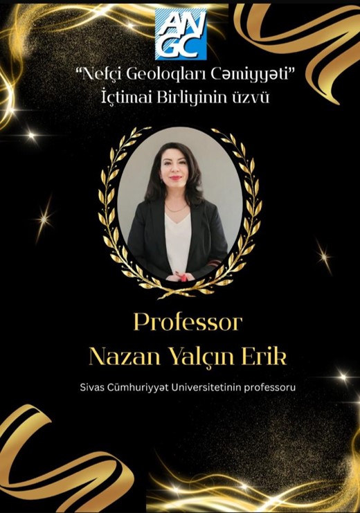 Sivas Cumhuriyet Üniversitesi Mühendislik Fakültesi Jeoloji Mühendisliği Bölümü öğretim üyesi Prof. Dr. Nazan Yalçın Erik, Azerbaycan’ın en köklü ve saygın meslek kuruluşlarından biri olan Azerbaycan Neftçi Jeologlar Cəmiyyəti İctimai Birliği (NGCIB) tarafından onur üyesi seçildi.